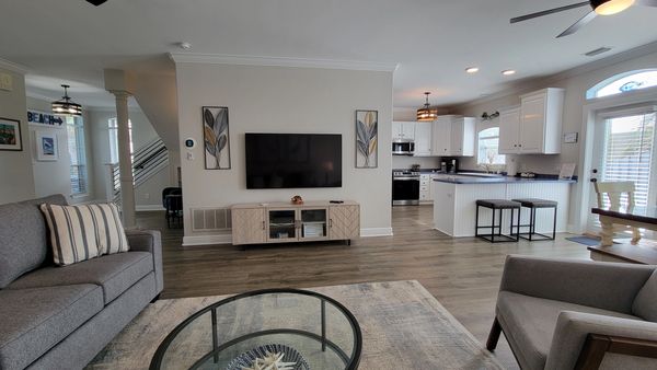 This three-bedroom private home, has a cozy bunk loft area, a Queen sleeper sofa, a pack-and-play, and two-and-a-half bathrooms. The spacious layout can comfortably accommodate 8-10 guests.