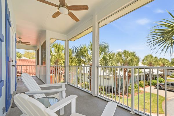 The second floor veranda is accessible from the King Bedroom or the Loft Area, and also has ceiling fans and lighting.